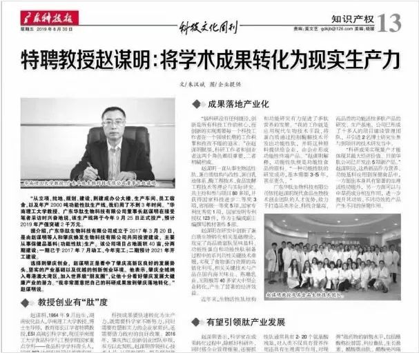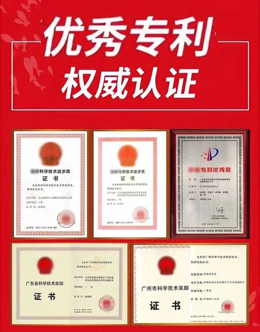 赵谋明教授还拥有多项国家专利,其中发明专利有123件,荣获国家科技进步奖3项!相关产品已经在市场推广运用,近三年来,实现新增产值100多亿。他专注研发睡眠肽30年,多次获得国家科技技术进步奖和专利。
